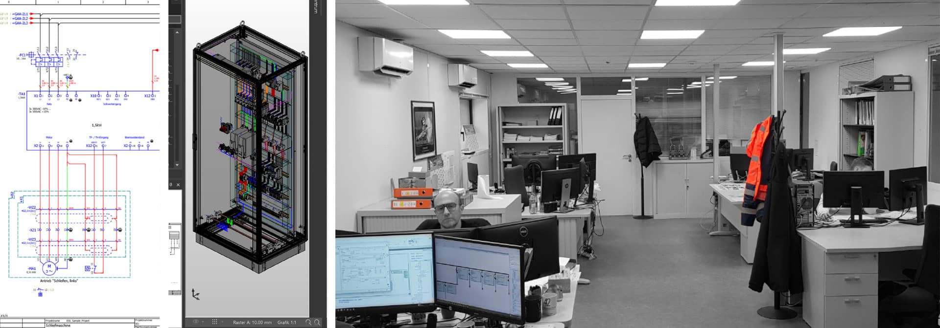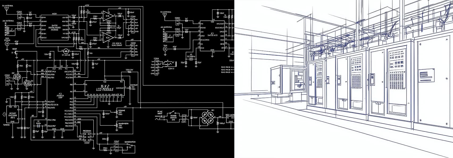 - Etude d’exécution avec réalisation de dossiers complets, note de calculs BT, schématique sous différents logiciels de DAO, bilan thermique, jusqu’au dossier conforme aux ouvrages exécutés (DOE).